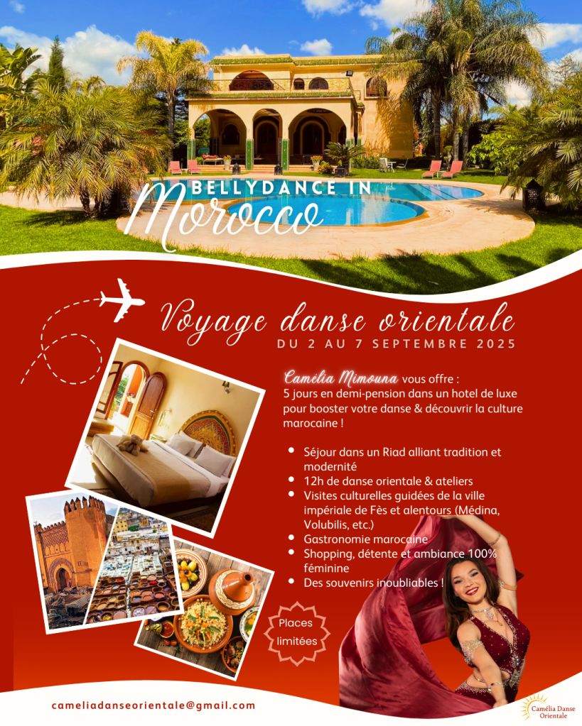 🌺Que vous soyez débutante ou danseuse confirmée, ce voyage est une invitation à vous reconnecter à votre féminité, à partager des moments forts entre femmes, et à vivre une expérience inoubliable sous le soleil marocain.